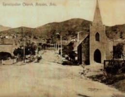 St. Andrew’s Episcopal Church in Nogales, Arizona began as a mission of St. Paul’s in Tombstone. St. Andrew’s was founded on September 1899 by the Reverend F. S. Eastman. In 1903 a church was built on the southeast corner of Crawford & Sonoita streets. This white stone, tall-steepled, gothic-styled church was dedicated on November 4, 1906 and served the community until September 1968. The church was secularized and razed for Interstate Highway construction in October 1968.